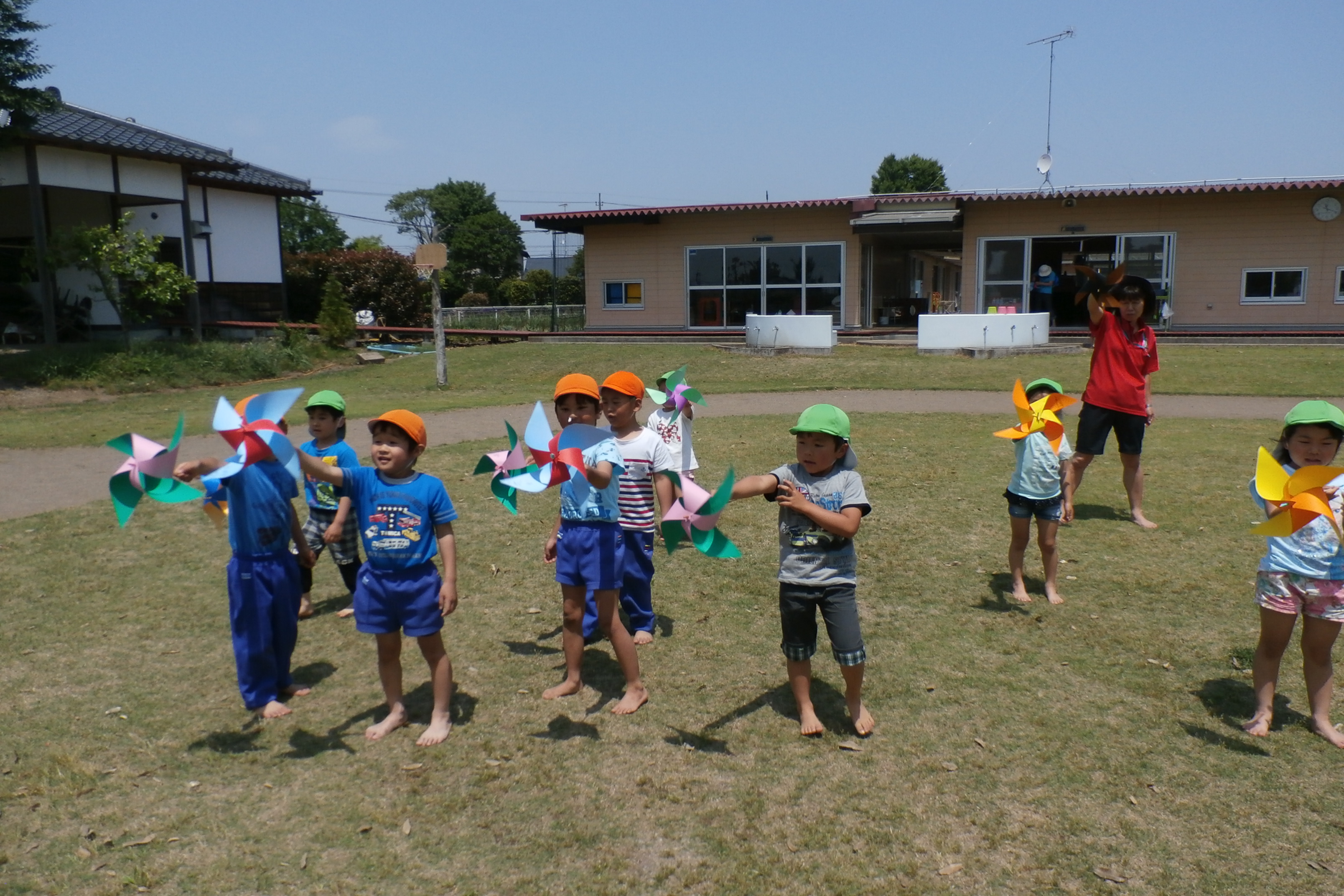 今週は、緑の園庭に気持ちいい風が吹きました。