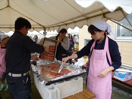 役員さんが中心となって、「やきそば」「フランク・ジュース」の調理・販売、