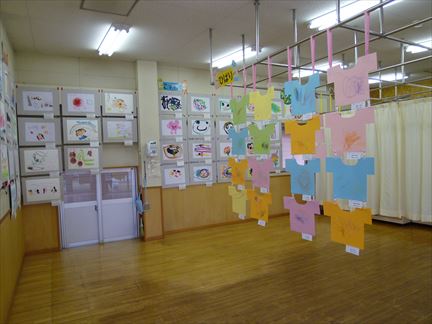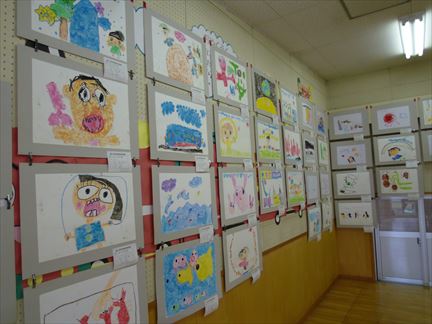 図書室『パレットタウン』には、園児の可愛らしい絵や作品をたくさん飾りました!