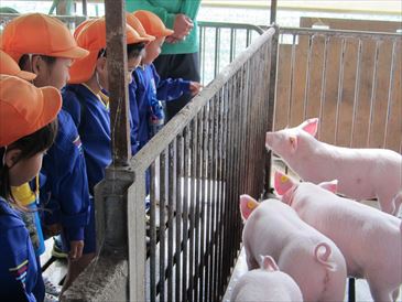 優しいお兄さんお姉さんが牛舎や豚舎を案内してくれました(^・^)