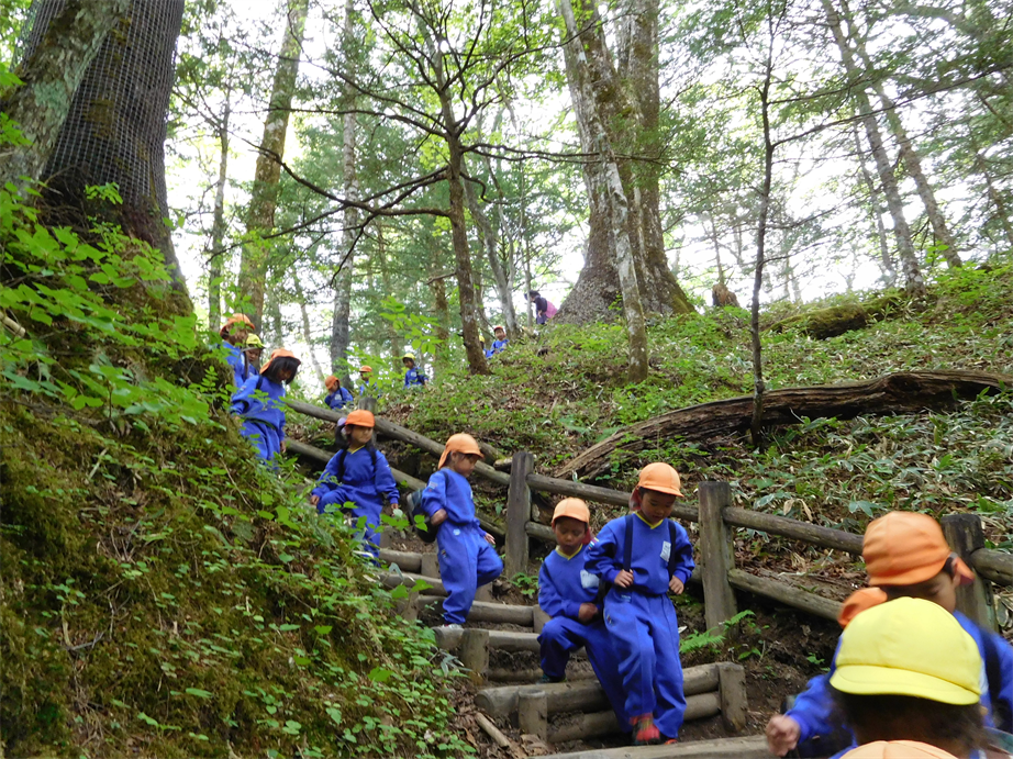 園にはない景色、におい、音など豊かな自然に囲まれた中を歩くことができました。