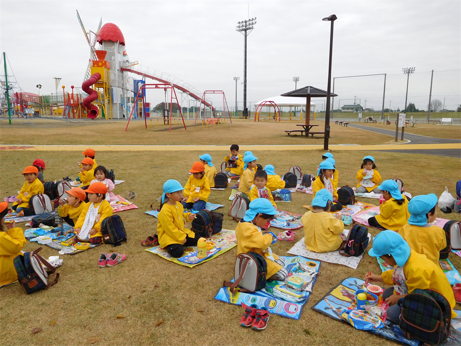 年少さんの園外保育(^O^)/ 11/21(月)年少さんが真岡こども広場に行ってきました 「コットベリーちゃんの公園だ!」「行ったことある~」とバスの中から大はしゃぎでした 公園でのお約束をして沢山遊びました ローラーすべり台もみんなでドキドキすべり 美味しいお弁当をモリモリ食べました 寒かったけど元気いっぱい遊んだ一日でした (越島・岡本・佐藤)