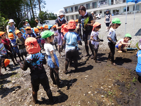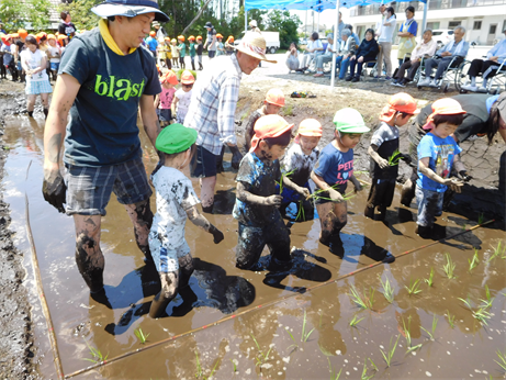 何人かの子は田植えの経験があったようで、上手に植えていましたよ![]()