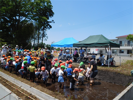 中には、田んぼの中で泳いでしまう子も…