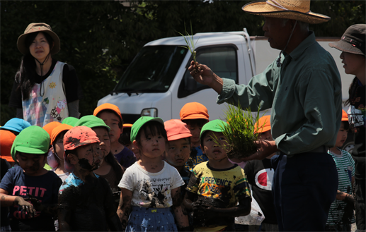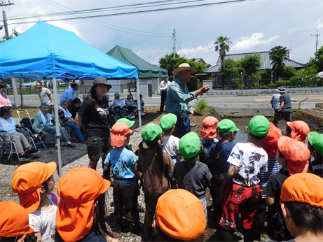 田んぼの先生のみやざわさんのお話を真剣に聞いていた年長さん![]()