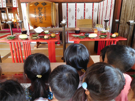 宮司さんのお手本を見ながら、子ども達もしっかりお約束を守ってご挨拶をしました![]()