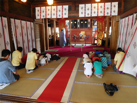 子ども達は慣れた様子で大前神社の本殿へ...![]()