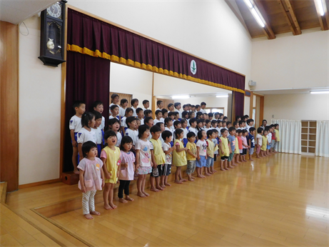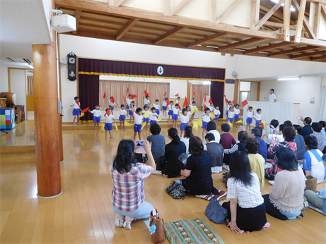 年少・年中・年長さんはホールで和太鼓や遊戯・歌の発表をしました?
