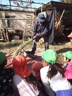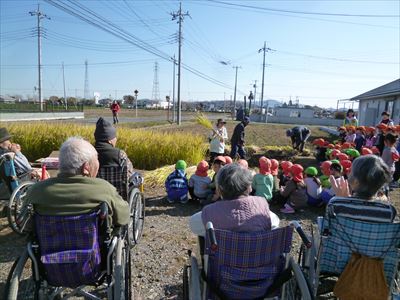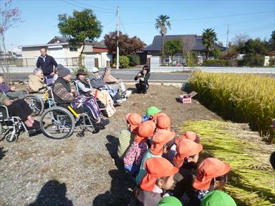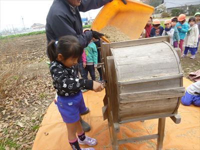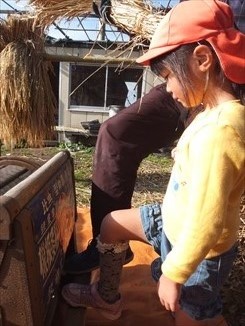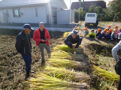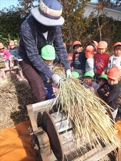 収穫した稲に触れたことがなかった子も多く、みんな興味を持って感触を楽しんでいました?