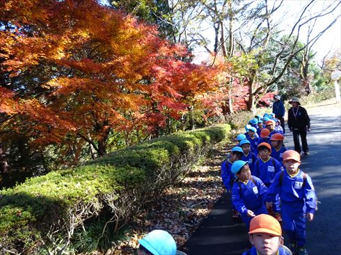 歩きながら木々や植物を見て、「葉っぱが黄色いね」「あっちは赤だよ」「あれ見たことある~」とたくさんの言葉が飛び交っていました??