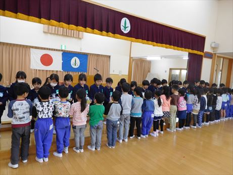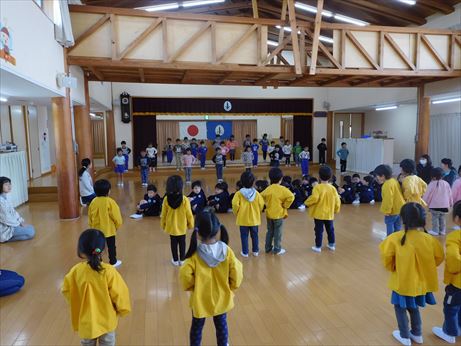 司会や掛け声も、今までは年長さんがやっていたことを今度は自分たちがやることに緊張や嬉しさが見られました![]()