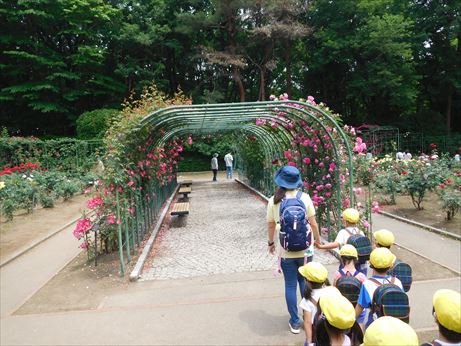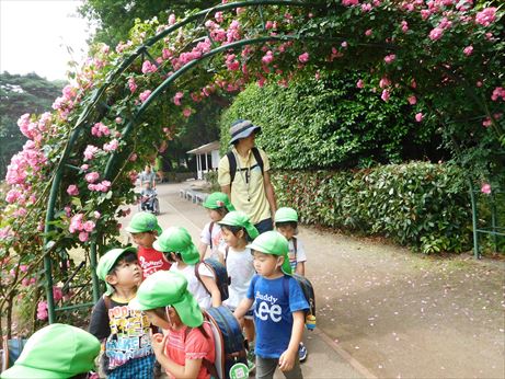 様々な色のバラに興味を示し、何色のバラが好きか友達や先生と話していました![]()