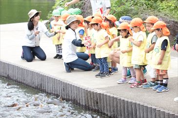コイにえさをあげました