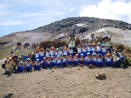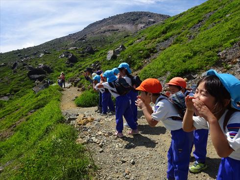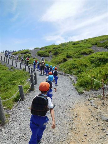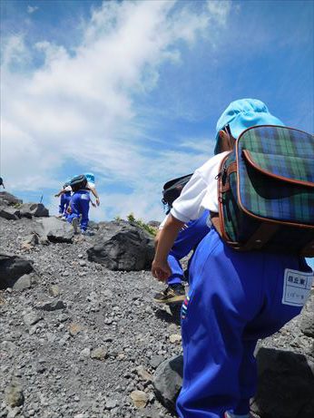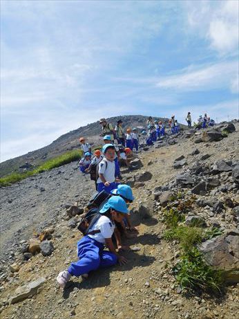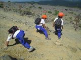 坂道や大きな岩を登り、息もあがりながらも一生懸命頂上を目指しました![]()