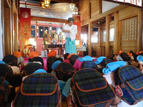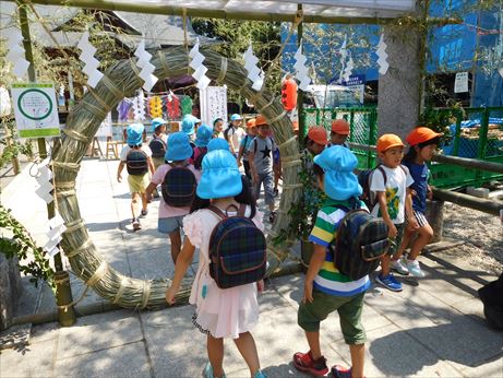 茅の輪くぐりも行ない子ども達も神主さんからのお話しを聞きながら