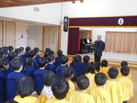 理事長先生からのエールをもらい、3学期また元気に登園してくることを約束![]()