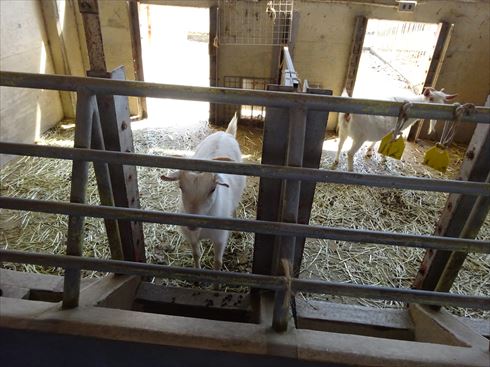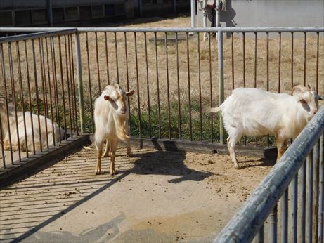 子どものヤギと大人のヤギを見比べ違いを探していました
