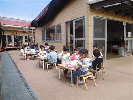 そして東園に帰ってからは、年中さんと給食も一緒に食べました