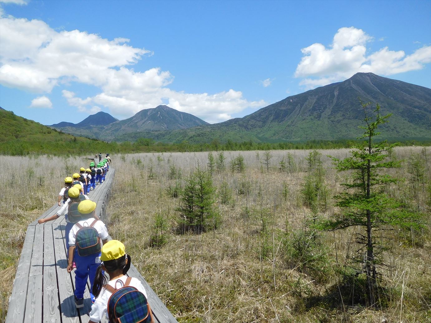 とっても爽やかな風を感じながら、木道をどんどん進んでいく年長さん![]()
