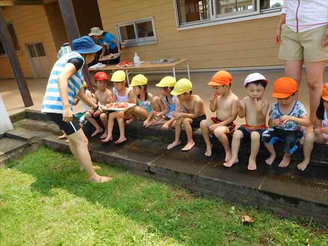 7月&8月は、長い雨と日差しの強い日が続きましたが子ども達は、水遊びをしたり、大好きなかき氷