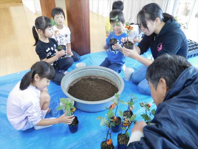 ピーマンやトマトを年長さんの畑で育てた経験や農園での収穫体験が、子ども達の興味を育てていることがよくわかった行事でした?ご家庭でも、家庭菜園?や布染めなどたくさんの経験をしていることで、興味がますます高まり、育てる知識も方法もよく話を聞いて挑戦していました![]()