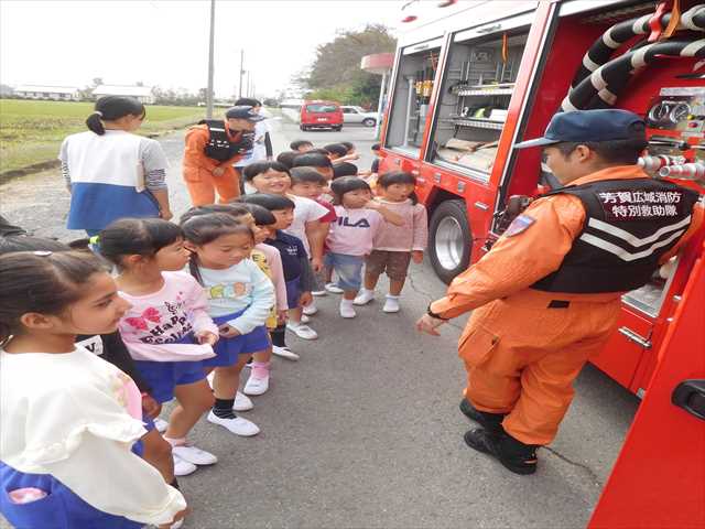 最後に消防車に乗っている装備品を見せてもらいました![]()