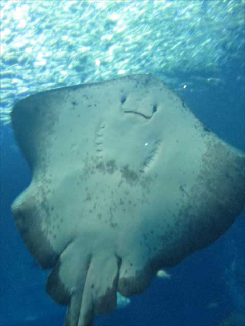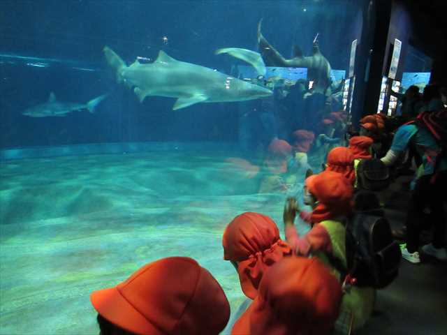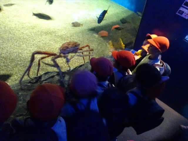 サメやエビなど知っている生き物を見つけると、水槽にぴったりくっついてよく見ていました!!