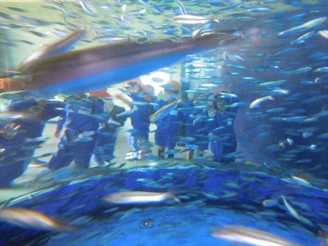 大水槽でダイバーさんのお話を聞いてから『ダイバーさん』に興味津々!サメの部屋を掃除しているダイバーさんを見つけて、2度目のサメゾーン見学( *´艸`)笑 様々なことに興味が湧いていていろいろなものに目を輝かせている子ども達でした✨