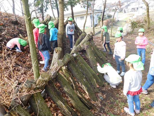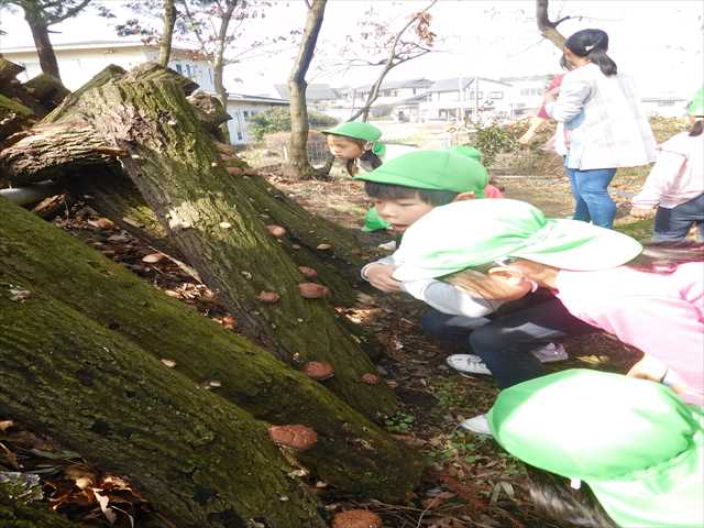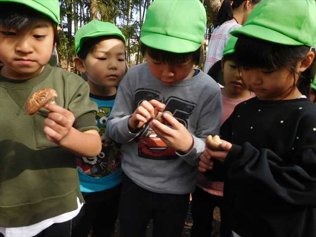 卒園するまであとわずかですが、小さいしいたけがまだたくさんあったので『また収穫にいこう』と厨房の先生が調理してくれた”しいたけ”を食べながらにこにこで話をしていた子ども達でした?(越島・薄井)