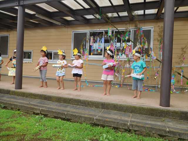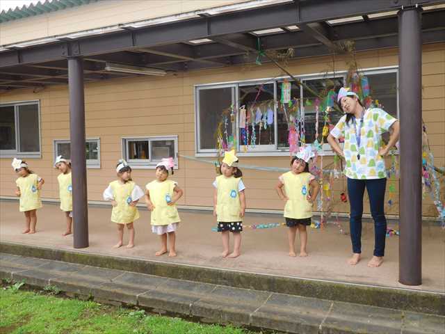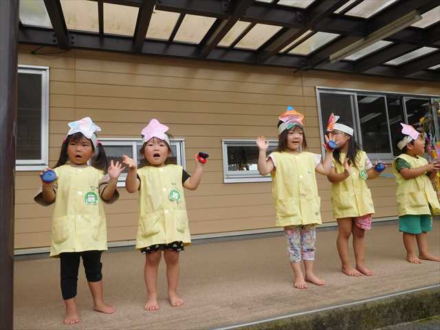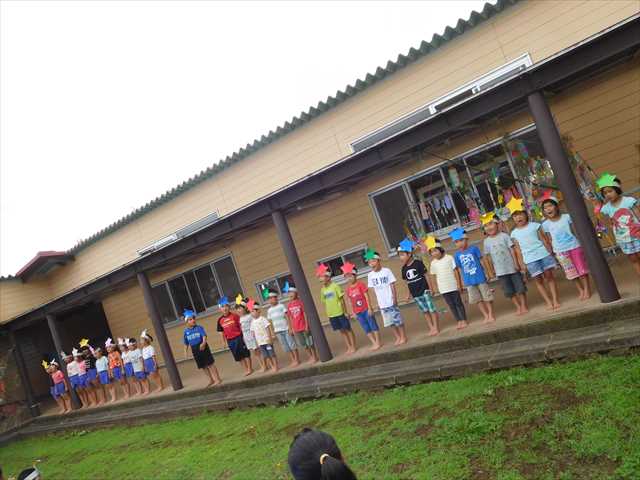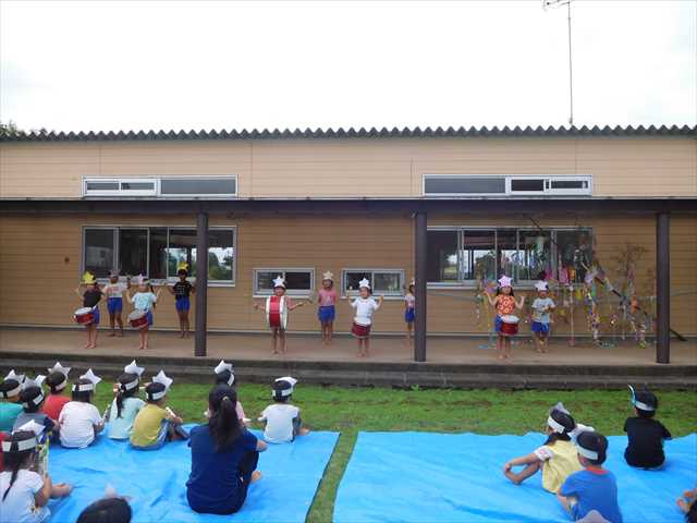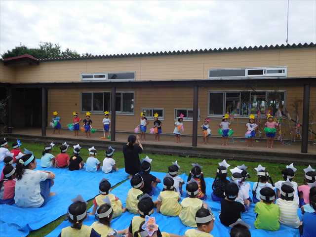東園のみんなが中庭に集まってそれぞれの発表をして楽しみました?