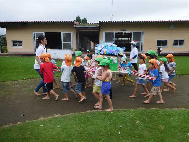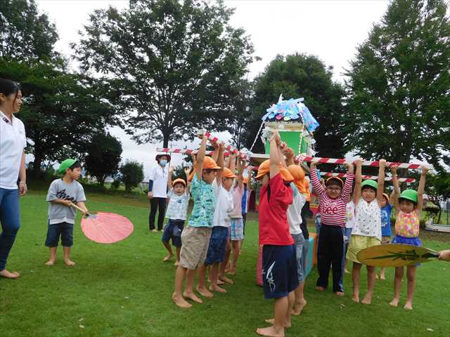 園に帰ってからは、自分たちで作った特別な神輿をいつもより元気いっぱい担いでいた年長さんなんだかいつもより神輿が重く感じられた子もいたようです誰か乗っているのかな