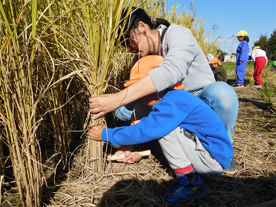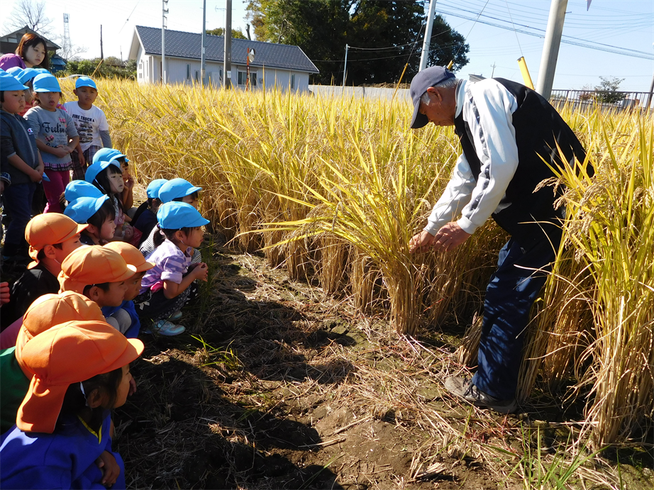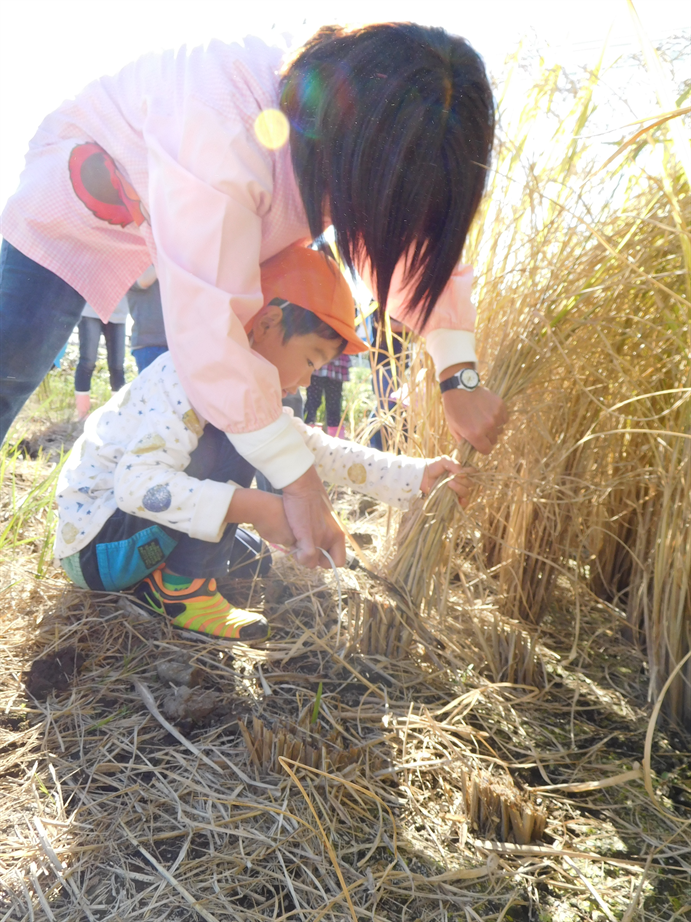 田んぼの先生のご指導の元一人ひとり鎌を使い、稲を収穫しました