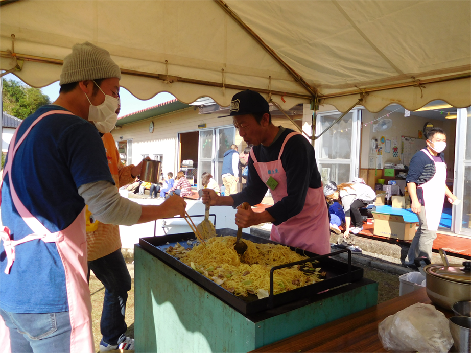 朝からお父さん・お母さん達はやきそばやフランクフルトのお店の準備