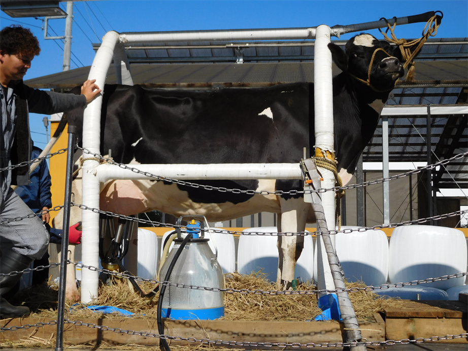 11/16(水)搾乳体験 『はじめての搾乳で子ども達&うしさんもドキドキ…ぶるぶる』1人ひとりコップを持って、搾乳しました
