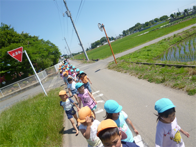 年中さん初めての園外保育(^^)天気は・・・もちろん☀ウキウキ(*^_^*)ワクワク(^○^)している気持ちをすこ~し我慢して、先生とのお約束☝