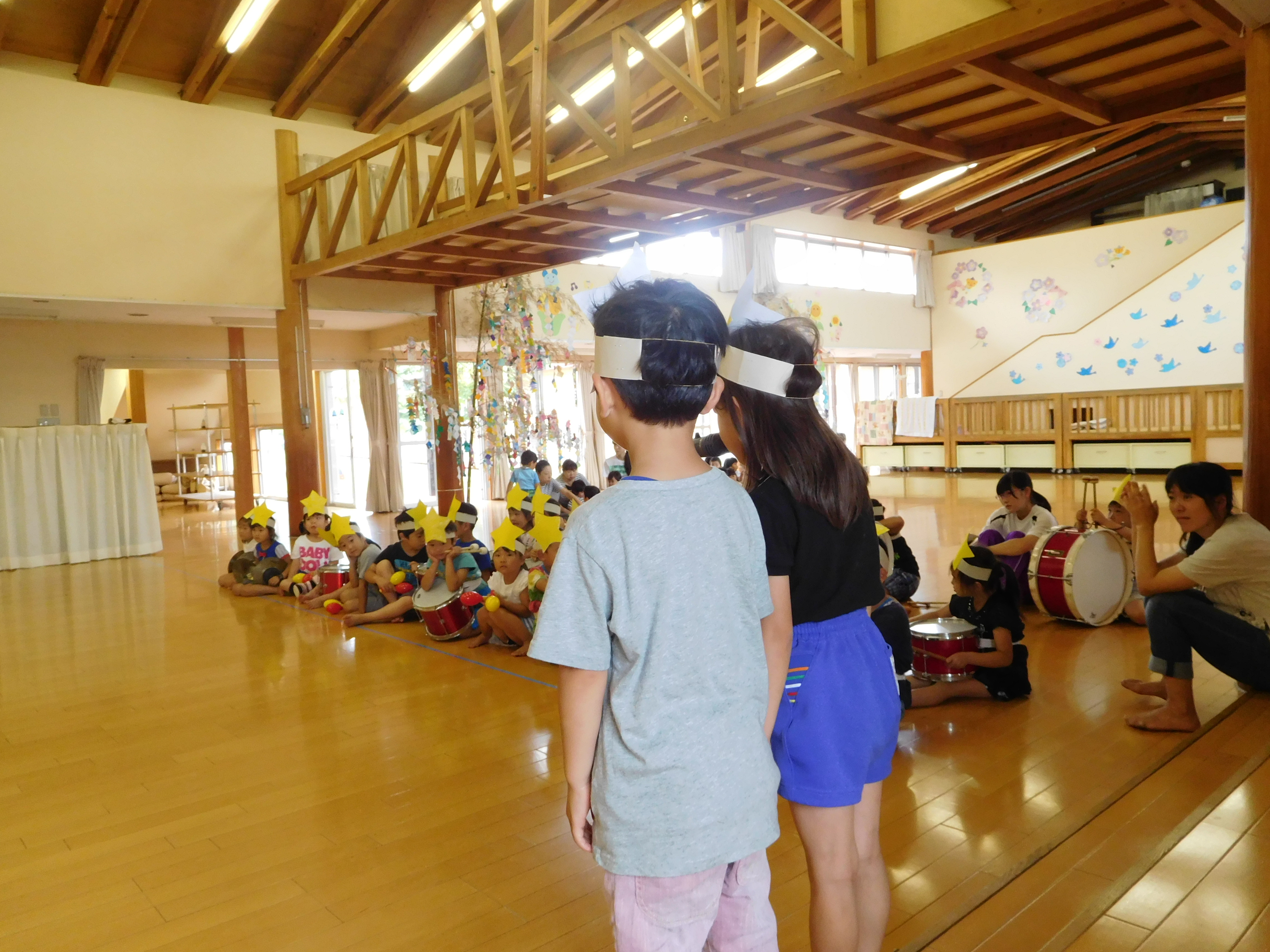 暑い中でしたがたくさんの保護者の皆さんが集まってくれました!!シーーーーン…と静まり返る雰囲気に緊張していたようですが年長さんの司会で、『七夕まつり』が無事スタート☆彡