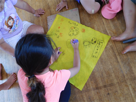 「何するんだろう?」と、ワクワクドキドキしながら子どもホールに集まりました。