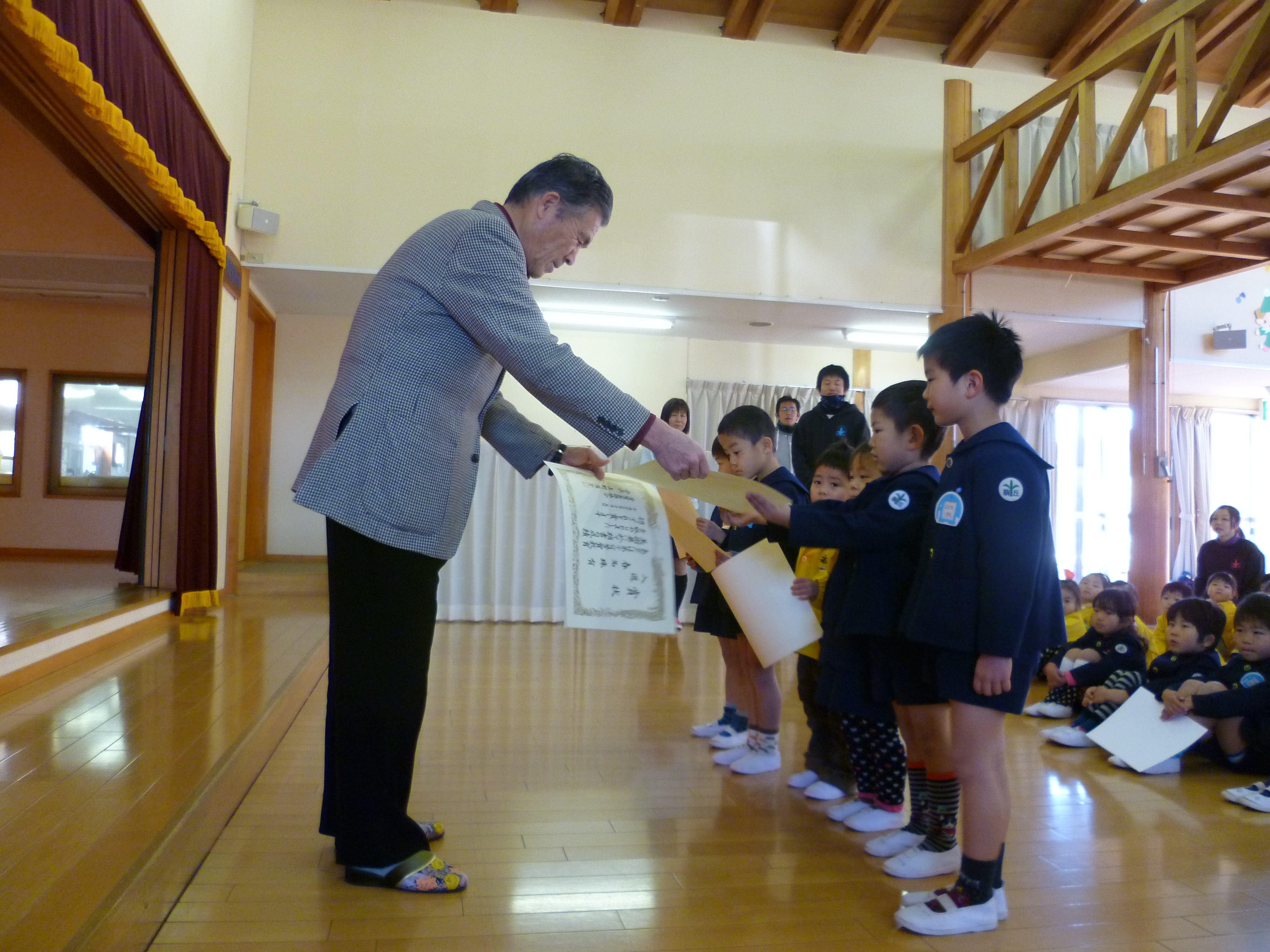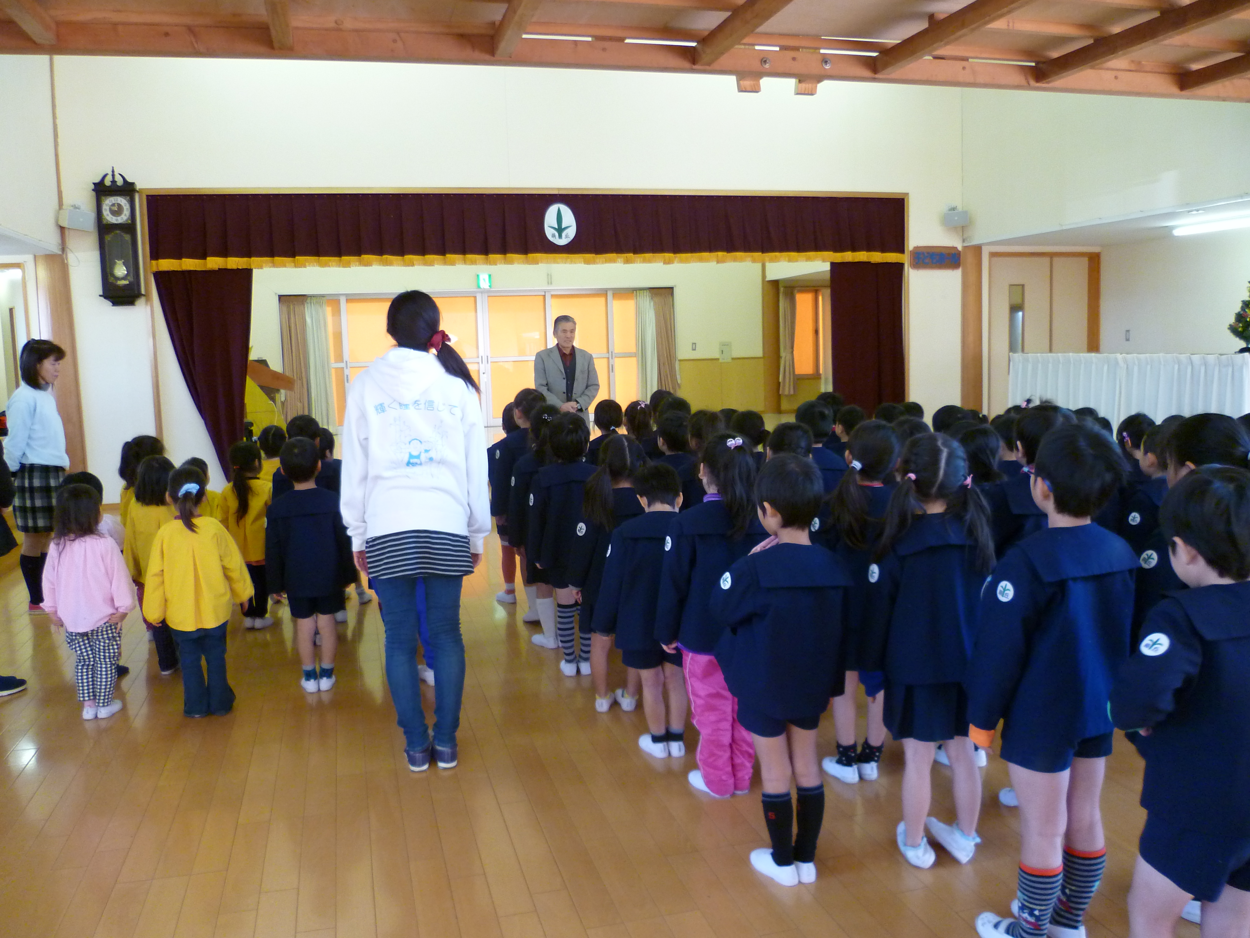 次に、理事長先生からお話を頂きました。運動会や発表会を振り返って、今年1年間の子ども達の姿を褒めてもらい、お正月休み中の過ごし方もお約束しました。とても静かに良く聞いていました。また年明け、元気に幼稚園・保育園に登園しましょうね! 続きを読む