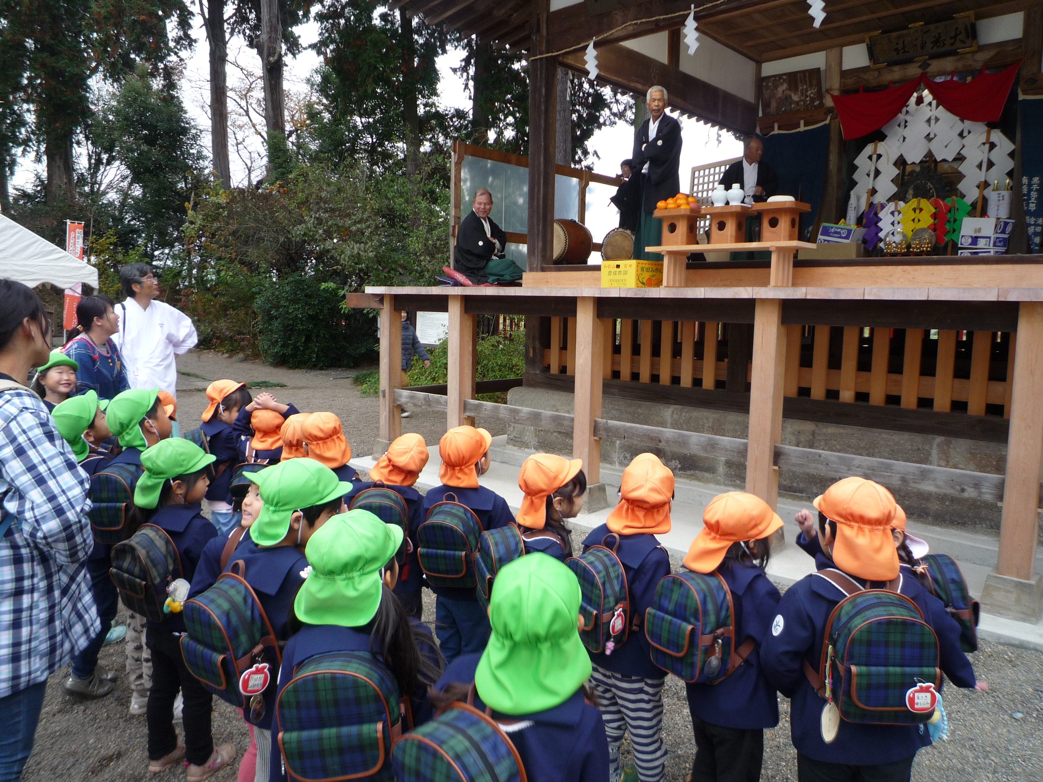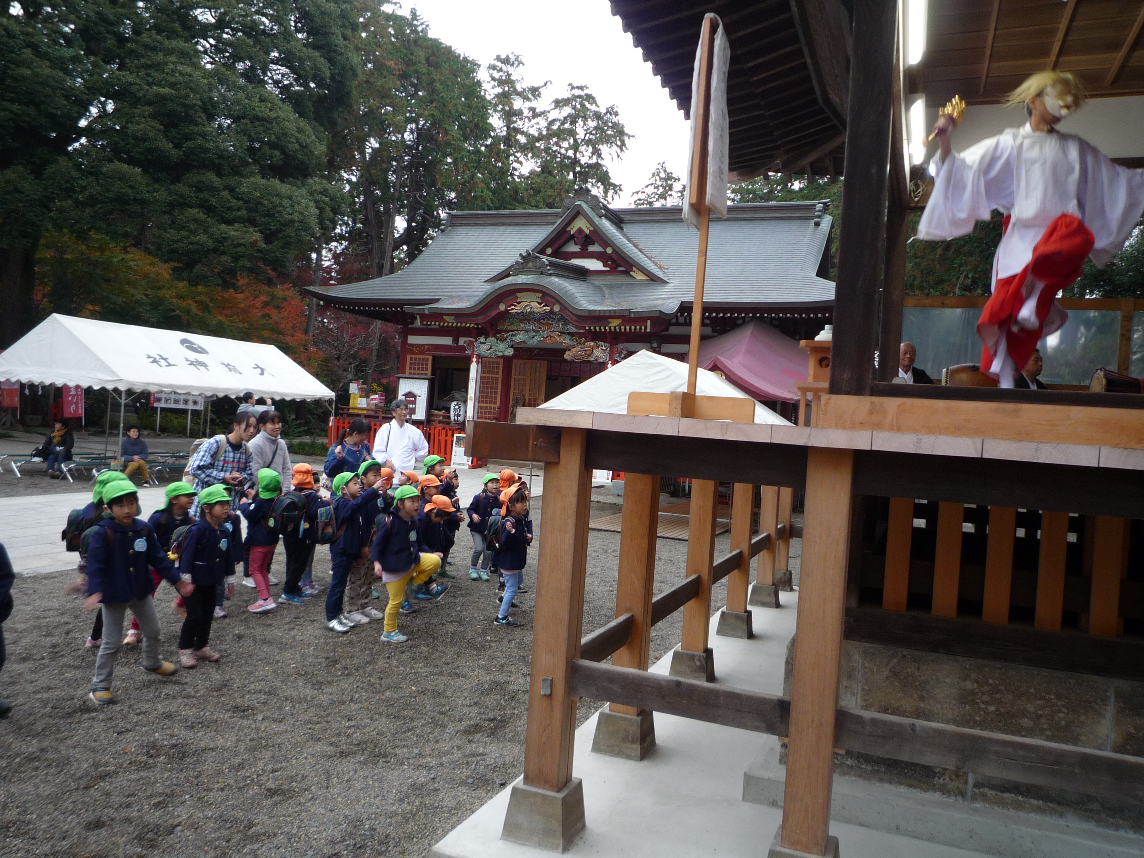 11/27(水)保育園の年長さん・年中さんが大前神社の大大神楽に行ってきました?